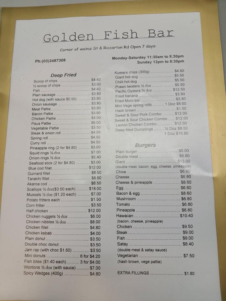 Golden Fish Bar thrives in the vibrant Riccarton area, just a stone's throw from local shops and the bustling university. The location boasts excellent accessibility, with wheelchair-friendly seating and ample free parking, making it easy for everyone to enjoy the fantastic offerings. For anyone in the mood for classic takeaway, this spot shines with its mastery of traditional fish and chips that locals rave about. Operating every day of the week, Golden Fish Bar caters to both lunch and dinner crowds, making it an essential stop for quick snacks or hearty meals. The establishment is particularly lively on Friday nights, with locals flocking in for the best takeout in town. On quieter days, like Mondays, visitors can enjoy a relaxed dining experience with lesser crowds. This bustling fish and chip shop embodies the community spirit of Christchurch, welcoming all who pass through its doors. With its casual atmosphere and quick service, your experience here will be nothing short of satisfying.
